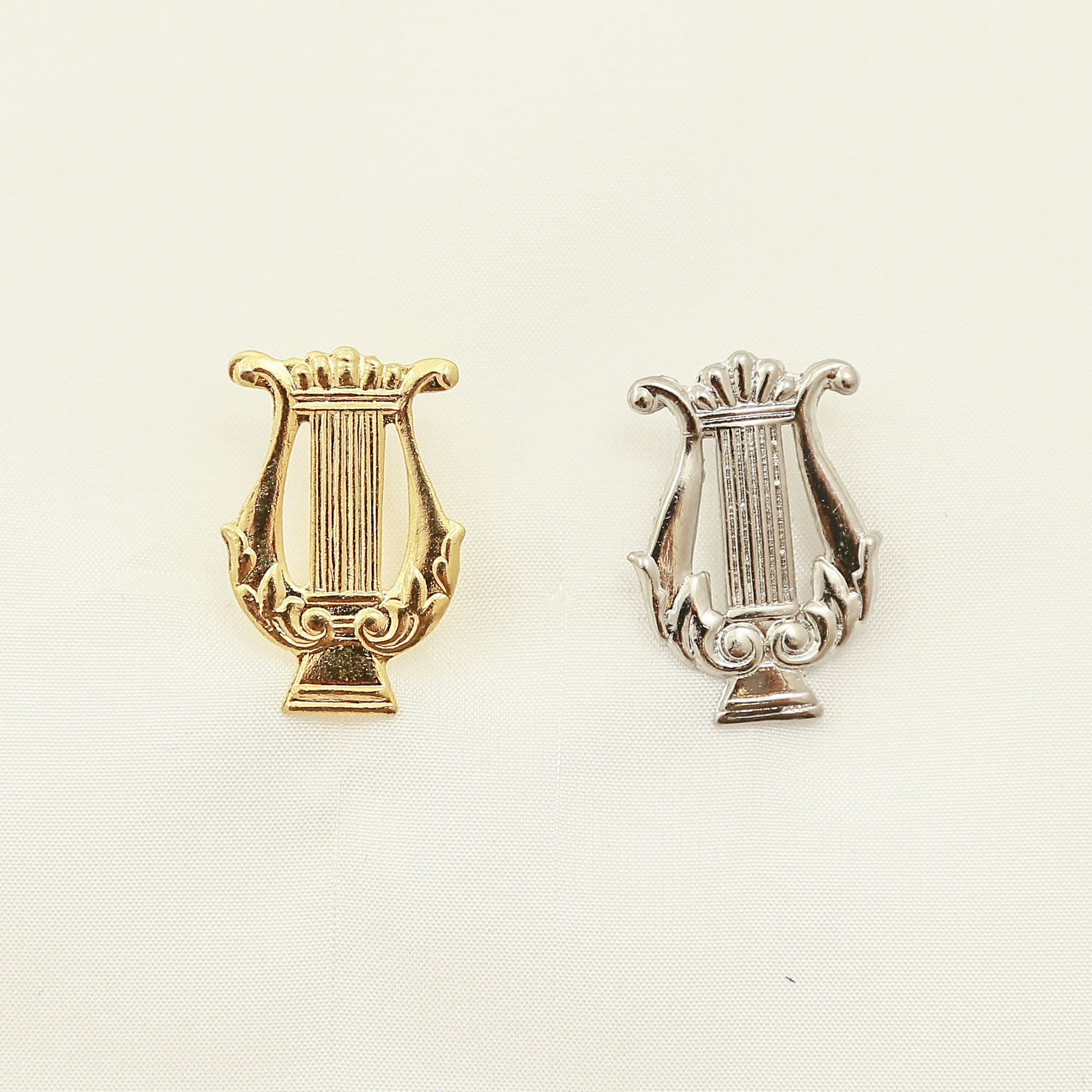 Lyre/harpe til uniform. Lengde 2,3 cm (uten nål). Vekt 5 gram