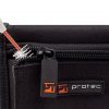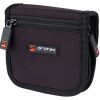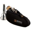 Munnstykkeetui for småmessing i nylon, med glidelås. Denne har plass til tre munnstykker, og er ideell for den som veksler mellom trompet, kornett og flygelhorn, eller for munnstykkeentusiaster. Kan festes i belte. Egen lomme i front med glidelås med plass til for eksempel munnstykkebørste.