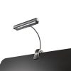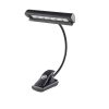 En smidig notestativlampe fra König & Meyer. Lampa leveres med ledning for 220V, men kan også bruke 3 stykk AAA-batteri som følger med i pakken. En kraftig klemme sørger for at notelyset sitter godt på notestativet. Det er enkelt å justere høyde og vinkel for å få det aller beste lyset på notene. En liten tøyveske følger også med. Passer for både store og små notestativ.
