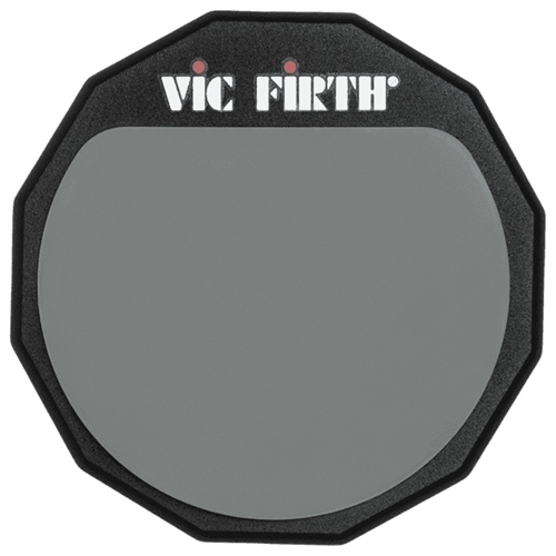 Øvepad (6″) fra Vic Firth. Denne er laget for å kunne brukes overalt. Baksiden hjelper til med å holde paden på plass.